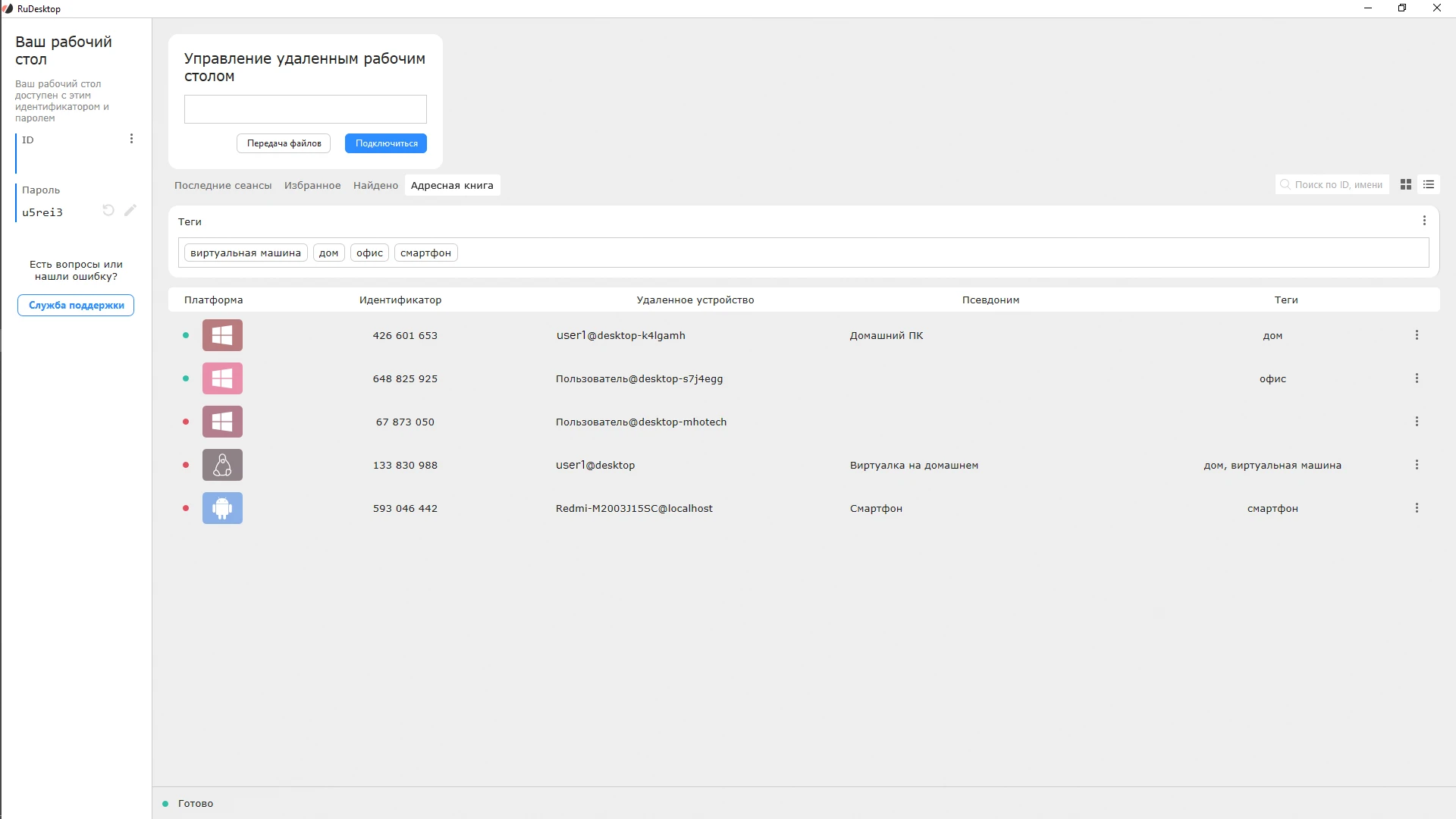 RuDesktop помогает структурировать все ваши устройства и быстрее находить нужные подключения.